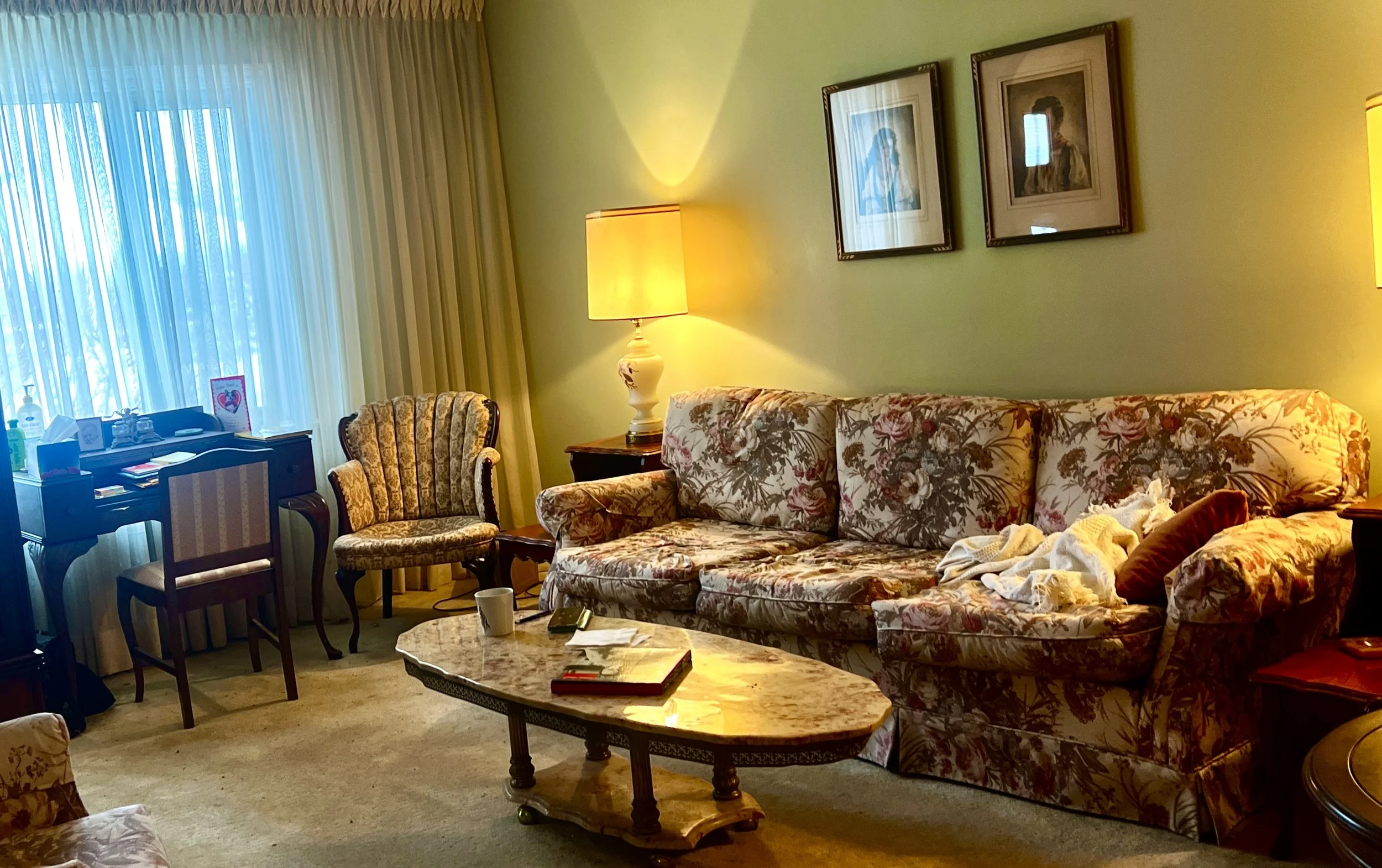 Not so fast. There is so much more here than meets the eye. A blue tickhound sleeps all morning on that blanket. Could use a run. The smell of foot-deep shitaake, wet fen. Its nails are hooked yellow ivories, sharp as lion’s teeth. The woman in the photograph up on the wall, Penelope Maria, grew up a dancer in Seville, moved here after the war, and made lace wedding dresses through the 1970s in a limestone cottage on Mowat. It was her husband who pilfered the marble for that coffee table, squeezed his Fiat under the low-slung and rusted chain at the mouth of an Italian quarry late September 1952, just before a great rain obliterated access. He tied a slab twice that size to the car’s roof, but it broke in two fleeing the Carabinieri with their ludicrous sirens and their blue lights thrown onto the quarry walls like a rave. Their grandson sent that card on the desk. He trims countertops out by the highway now, landed that job using the family story. There is almost exactly $2600 in the desk drawer, I counted it. That and a solid plan to buy a plane ticket soon as the house sells, see the rest of a world she almost remembers.