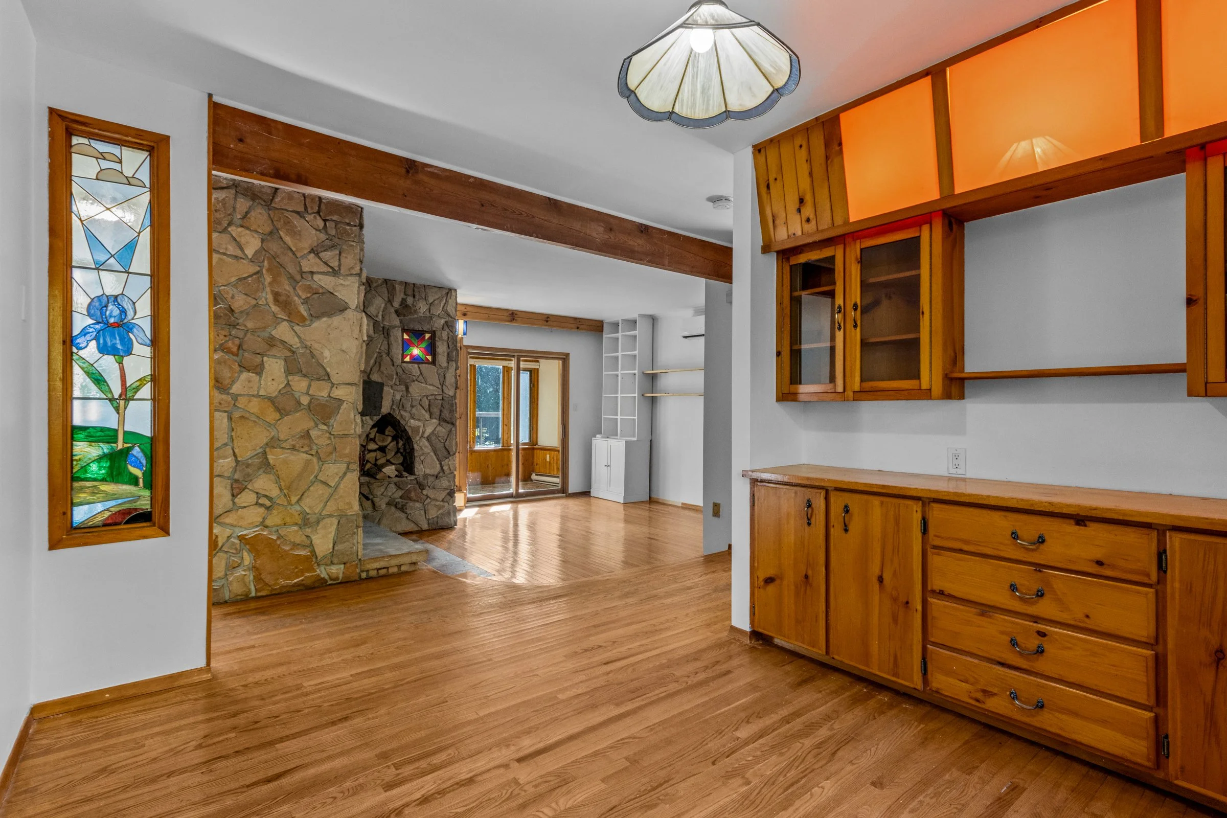 A four-bedroom passive solar home (with a fresh heat pump for the convenience, and the savings, and the new extremes of hot and cold) set on over an acre both landscaped and wild, just north of the city (at Unity Road). There is a serious cross-section of petrified wood set like a portrait into the majestic sandstone fireplace at the heart of this thrillingly off-beat, as well as smartly designed and organized home. There is a sauna tucked away. A towering south-facing solarium of glass segmented by golden beams and overlooking the expansive decks, the fenced vegetable gardens, and the butterfly meadows, the fruit trees. The insulated and drywalled garage has its own pump head, as well as polished concrete floors. It may be enough, all on its own, to see the property sell quickly. The house was built in 1982; Duran Duran were top of the charts. But it feels more a mid-century coming together of stone and wood, concrete and glass. It is as stylish a house as you will see this season.