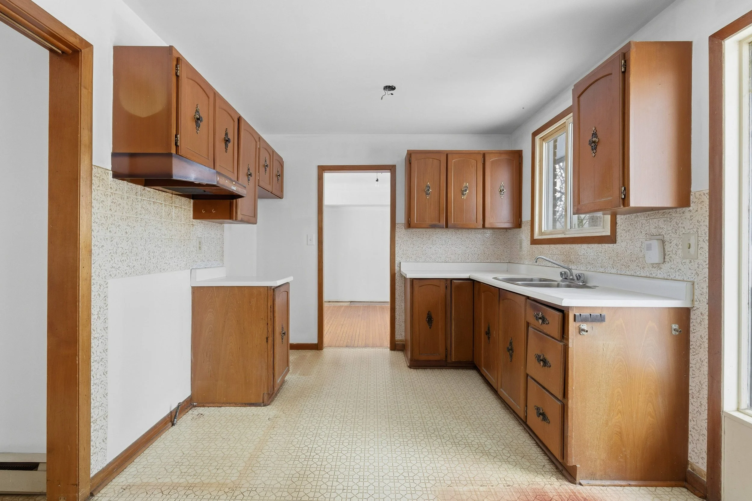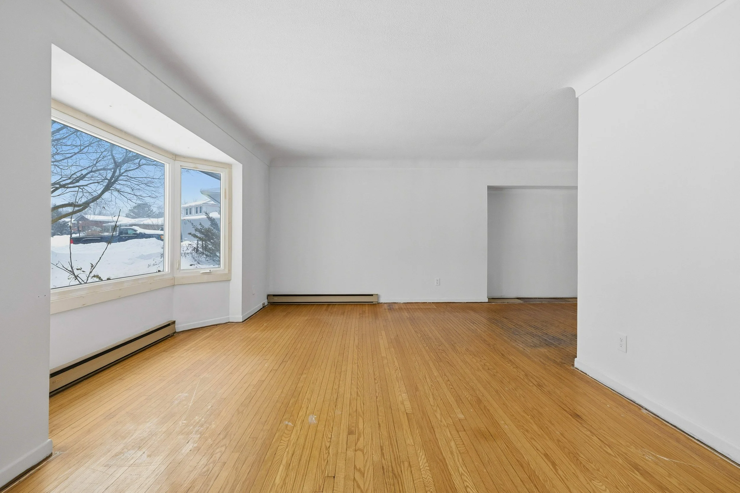 In that leafy west-end pocket south of Bayridge Secondary and north of Lemoines Point, 634 Fleet St guards the bend in the road, protects its pie-shaped lot with a sky-scraping pine tree that connects like a camouflaged thread the land north of Lake Ontario to the towering cumulus above it. The house went up in 1970, and sprawls along the horizon - an attached garage at one end and the bedrooms a little higher at the other. There are three of those on the second level, and a fourth in the basement, next to the laundry room, the extra bath, and the panelled rec room with its lime green shag. On the main level the living room and dining room wrap around the original kitchen with its door out to the deck and garden. The charms are obvious, but most will still choose to refresh the house top to bottom, is my guess. The coming spring feels the ideal time for that - throw open the doors and windows and gather your materials in the long driveway, or lay out your plans on the back deck. The house is priced to comfortably accommodate some pretty elaborate changes. Just don’t take out that livid, ankle-grabbing carpet, I beg you.