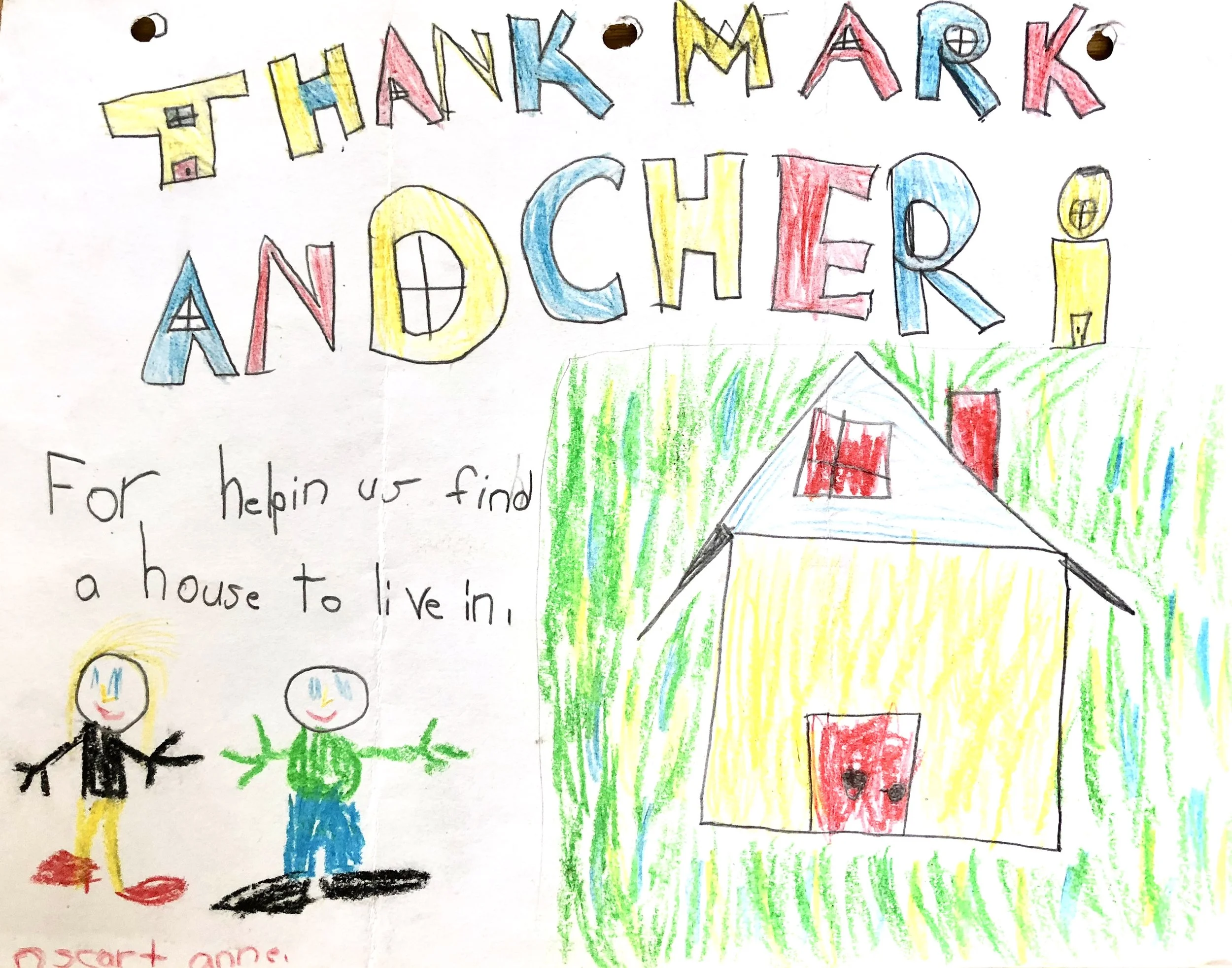 It brings the important things sharply into focus, that’s what I’m saying in my usual roundabout way. Its a fabulous drawing (you see how most of the letters are also little homes?) that reminds us that the job isn’t really about selling houses at all. We don’t think of ourselves as sales reps, not ever. We just do our best to put people and places together.
